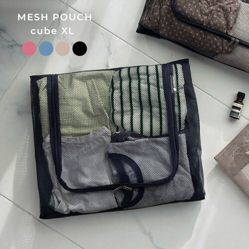 仕分け ポーチ トラベルポーチ メッシュ パッキング 大容量 旅行 便利グッズ travelus メッシュポーチ キュブ XXL mesh pouch cube XXL 撥水 u字 ファスナー 固定 整理 荷造り 休み 通気性 高品質